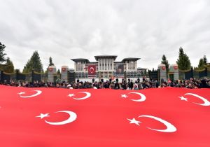 Cumhurbaşkanı Recep Tayyip Erdoğan, Türk bayraklarıyla Cumhurbaşkanlığı Külliyesi'ne yürüyüş düzenleyenlere, "Cumhuriyet Bayramımızın 92. yıl dönümünde 1 kilometre uzunluğundaki Türk bayrağımızla şuanda tüm Türkiye'ye, tüm dünyaya bir mesaj veriyorsunuz. Bu mesaj tek millet, tek bayrak, tek vatan, tek devlet mesajıdır" dedi.