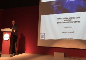 Türkiye Bilişim Derneği (TBD) Erzurum Şubesi, günümüzde yeni iletişim teknolojileri esaslı tüm uygulamalarda gündemde yer alan “bilgi güvenliği” konusunda düzenlemiş olduğu etkinlikle alan uzmanları ve öğrencileri bir araya getirdi. SİBERSAN Bilgi Teknolojileri Bilgi Güvenliği Uzmanı Nazım Karadağ, 11 Mayıs 2015 tarihinde Atatürk Üniversitesi Sürekli Eğitim Uygulama ve Araştırma Merkezi Toplantı Salonu’nda düzenlenen konferansta bilgi güvenliği yönetim sisteminin gerekliliği üzerinde dururken, konuyu istatistiki bilgilerle zengin bir içerikte ve görsel sunumlarla ele aldı. Konferansa TBD Erzurum Şubesi Başkanı Prof. Dr. Üstün Özen, Atatürk Üniversitesi İletişim Fakültesi Dekanı Prof. Dr. Uğur Yavuz, Atatürk Üniversitesi Bilgisayar Bilimleri Araştırma ve Uygulama Merkezi Müdürü Prof. Dr. Dursun Kaya, TBD Erzurum Şubesi üyeleri, Atatürk Üniversitesi İktisadi ve İdari Bilimler Fakültesi Yönetim Bilişim Sistemleri öğretim üyeleri ve öğrencileri katıldı.