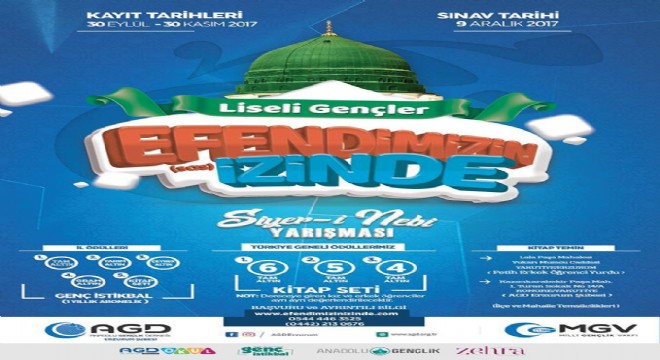 Her yıl Anadolu Gençlik Derneği tarafından Türkiye geneli düzenlenen Siyer-i Nebi Bilgi Yarışması kayıtları devam ediyor.