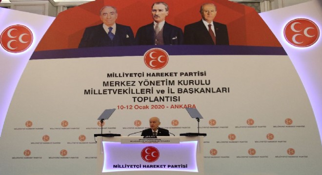 Harap olan, hüsrana uğrayan coğrafyaların eskiden Türkiye'nin hakimiyetinde olduğunu hatırlatan Bahçeli, "Buralarla ilgilenmemiz doğaldır, normaldir. Doğal ve normal olmayan binlerce kilometre uzaktan gelip bölgemizde silah ve zor kullanan ülkelerin cüretkarlıklarıdır. Gönül köprüsü kurduğumuz, kültürel ve manevi bağlarla aramızda sıkı rabıtalar bulunan komşu halkların huzursuzluğu elbette Türk milletine şu ya da bu şekilde sirayet edecektir. Irak'tan kendimizi soyutlamamız mümkün değildir. Suriye'ye sırtımızı dönmek, Libya'ya yüzümüzü çevirmek, İran'a mesafeli durmak akıl karı olmadığı gibi mantıklı ve makul bir tercih de sayılamayacaktır. Kaldı ki buna ne tarih ne de milli tecrübeler müsaade etmeyecektir. Ankara'nın güvenliği Şam'dan, Bağdat'tan, Trablus'tan, Tahran'dan, Mogadişu'dan, Sana'dan, Kahire'den başlayacak, hepsini birden jeopolitik bir kuşak içine alacaktır. Sınırın öbür tarafı huzura kavuşmadan Türk vatanı emniyet bulamayacaktır. Bu nedenle komşu ülkelerdeki kanlı ve kaotik manzara Türkiye'nin tasvip etmeyeceği, olur ve onay vermeyeceği açmazlardır, çarpıklıklardır" ifadelerini kullandı.