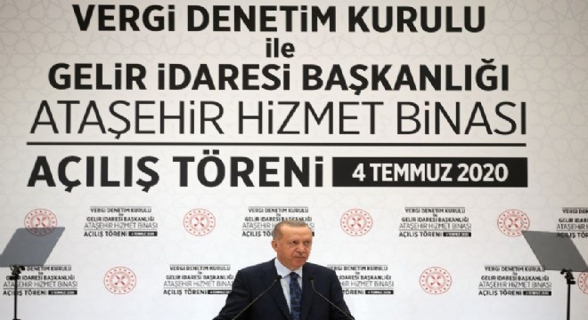Cumhurbaşkanı Recep Tayyip Erdoğan, Hazine ve Maliye Bakanlığı Vergi Denetim Kurulu – Gelir İdaresi Başkanlığı Ataşehir Hizmet Binası Açılış Töreni’ne katıldı. Cumhurbaşkanı Erdoğan törende yaptığı konuşmada, “Dünya ekonomisinin en önemli merkezlerinden biri olan İstanbul'un açılışını yaptığımız bu bina ile konumunu daha da pekiştireceğine inanıyorum. Korona virüs salgını sonrası İstanbul'un da cazibesi artacaktır. Yeni döneme hazırlık için vergi mekanizmalarının etkin ve hızlı işletilmesi, öngörülebilirliğin temel şartıdır. Türkiye'nin tüm kurum ve kuruluşlarıyla bir hukuk devleti olduğunu bu alanda göstermekte kararlıyız. Ülkemize yönelik çifte standartları, ikiyüzlü tutumları, ön yargılı yaklaşımları hukuk devleti niteliğimizi güçlendirerek aşabiliriz. Büyüme rakamları başta olmak üzere pek çok konuda ülkemizle ilgili tahminlerin hep fiili gerçekleşmelerin gerisinde kalması, potansiyelimizin zenginliği sayesindedir. Salgının dünya ekonomisinde küçülmeye yol açtığı dönemde Türkiye'nin olumlu yönde ayrışacağına inanıyoruz. Nitekim açıklanan her veri bu iddiamızı teyit ediyor. Ülkemizin çok büyük bir sıçrama sürecinde olduğunu yavaş yavaş herkes kabul etmeye başladı. Ekonomimize kurulan tuzakları birer birer bozarak yolumuza devam ediyoruz” dedi.