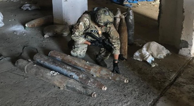 “Tel Abyad'da, PKK/YPG’li teröristlerce EYP yapımında kullanmak üzere toplanmış 11 adet patlamamış eski uçak mühimmatı, SAS Timlerimiz tarafından imha edildi.”