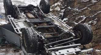 Kars'tan Erzurum'a giden polis aracı kaza yaparak şarampole uçtu.