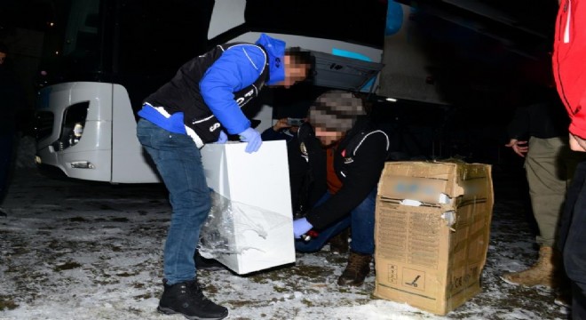 Bingöl’de yolcu otobüsünü durduran polis ekipleri bagaj kısmında kargo gönderisi olarak verilen kombi kasalarına zulalanmış vaziyette 30 paket halinde toplamda 21 kilo esrar maddesi ele geçirdi.