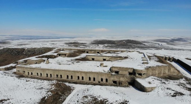 Kars’ta 46 tabyadan birisi olan, üzerinde bulunan dinleme borusuyla halk arasında ‘Borazanlı Tabya’ olarak bilinen Karadağ Tabya, ilk kez havadan görüntülendi.