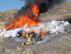 Bingöl’de polis ve jandarma ekipleri tarafından 2013 yılı içerisinde ele geçirilen 4 ton esrar ile 2 kilo 55 gram eroin, yakılarak imha edildi.