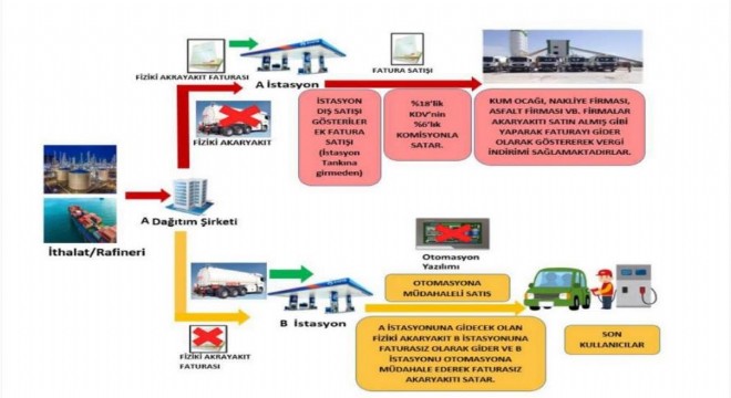 Emniyet Genel Müdürlüğü tarafından yapılan açıklamada, akaryakıt istasyonlarından 608 milyon litre akaryakıt satış verisinin otomasyon sistemlerine müdahale edilerek silindiği, silinen akaryakıtın güncel maddi değerinin yaklaşık 3,6 milyar TL olduğu ve MASAK raporuna göre devletin yıllık 3 milyar TL, 5 yıl içerisinde 15 milyar TL zarara uğratıldığı belirlendi.
