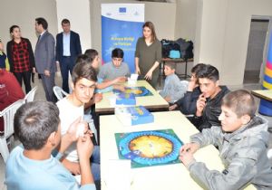 Erzurum AB Bilgi Merkezi Koordinatörü Elifnur Terzioğlu, öğrencilerin hem kendi aralarında hem de aileleriyle birlikte oynayabilecekleri zevkli bir oyun tasarladıklarını belirterek, 4-6 kişilik gruplar halinde oynanabilen oyundaki soru kartlarında Avrupa Birliği’yle ilgili genel kültür sorularının yer aldığı ifade etti.