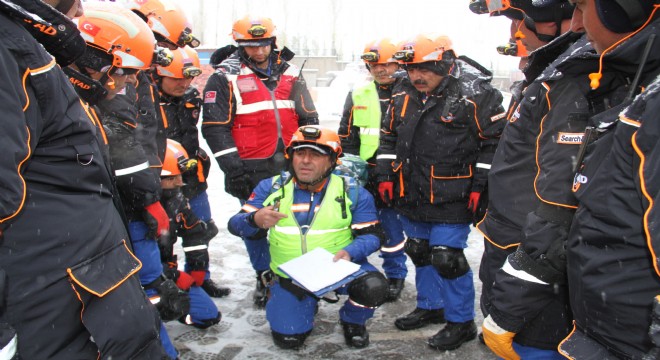 Erzurum’da kar yağışı ve soğuk havada, INSARAG uzmanları tarafından 176 konudan sınava tabi tutulan yaklaşık 100 personel, bu sınavı başarıyla tamamlamasının ardından sertifika yeterliliği alarak sınıflandırılmış ağır ekip olma hakkını elde etti.
