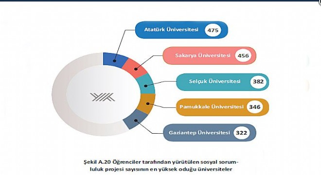 Ürettiği 475 sosyal sorumluluk projesi ile Atatürk  Üniversitesi ilk sıraya yerleşirken Sakarya Üniversitesi 456 proje ile ikinci, Selçuk Üniversitesi 382 proje ile üçüncü, Pamukkale Üniversitesi 346 proje ile dördüncü ve Gaziantep Üniversitesi 322 proje ile beşinci sırada yer aldı.