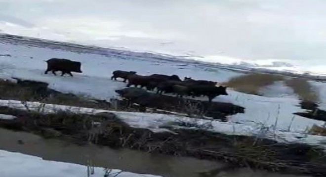 Erzurum'un Yakutiye ilçesi Çayırca Mahallesi’ne inen domuz sürüsü vatandaşlar tarafından cep telefonu kamerasıyla kaydedildi.