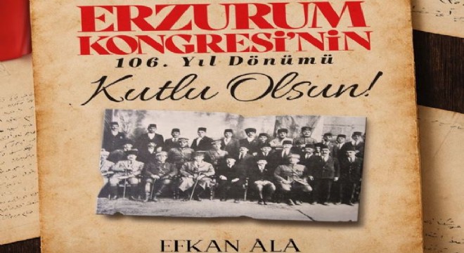 AK Parti Genel Başkan Vekili Efkan Ala Erzurum Kongresinin 106’ıncı yıldönümü dolayısıyla bir mesaj yayımladı. Sala Sosyal Medya adresinden yaptığı paylaşımda;