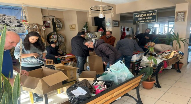 Ardahan Halk Eğitim Merkezi Müdürlüğündeki gönüllü kadın, kursiyer ve usta öğreticiler, depremzedeler için harekete geçti. Gönüllü olarak bir araya gelen kursiyerler depremzedeler için yetişkin ve çocuk kıyafetleri dikmeye başladı.