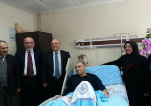 Erzurum KHB Genel Sekreteri Prof. Dr. Fazlı Erdoğan ve BEAH yönetimi Erzurum’da vali koruması iken kendi isteği ile Şırnak’a geçici göreve giden ve teröristlerle girdiği çatışmada bacağından yaralanan kahraman özel harekât polisi Mehmet Yazıcı'yı tedavi gördüğü hastanede ziyaret etti