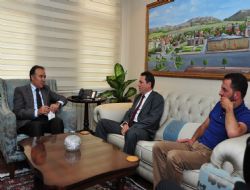 Organize Sanayi Bölgesi Yönetim Kurulu Başkanı Zafer Ergüney, yönetim kurulu üyeleri işadamları Ahmet Metin Karadayı, Sefa Yardımcı ve Ahmet Tan, Antalya’dan Erzurum’a atanan Vali Ahmet Altıparmak’ı makamında ziyaret etti. Organize Sanayi Bölgesi’ndeki son durum hakkında bilgi veren Başkan Zafer Ergüney, Vali Altıparmak’a yeni görevinde başarılar diledi. Ziyaretten duyduğu memnuniyeti dile getiren Vali Altıparmak da kentin kalkınmasında önemli bir rolü olan sanayiciler ve işadamlarına her türlü desteği vereceklerini belirtti.