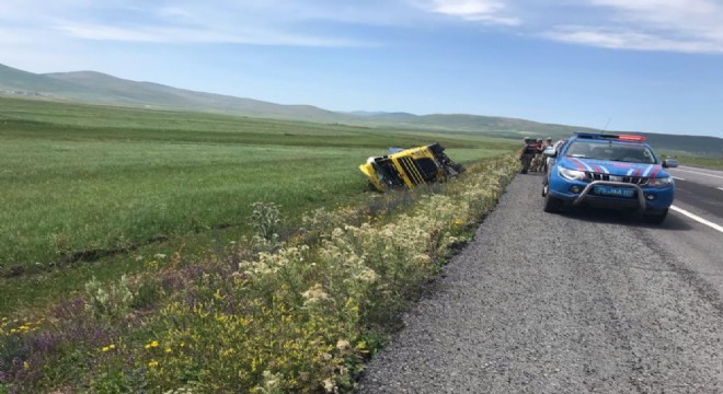 Erzurum'da kontrolden çıkarak devrilen servis aracındaki 6 kişi yaralandı.