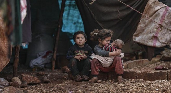 Paylaşılan fotoğraflarda, yaralı İdlibliler ve sokakta ekmek yiyen çocuklar yer aldı.