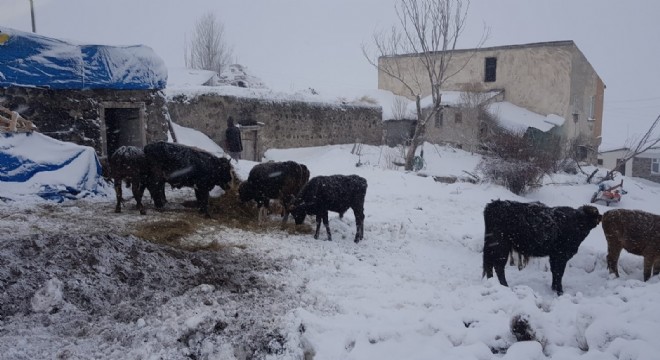 Aşkale İlçesi Hacı Mahmut köyünde yoğun yağan kar nedeniyle bir ahırın yan duvarı tamamen tavanı ise kısmen çöktü.