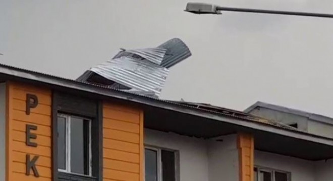 Erzurum’da hızı saatte 60 kilometreyi bulan fırtına apartmanların çatılarını uçurdu.