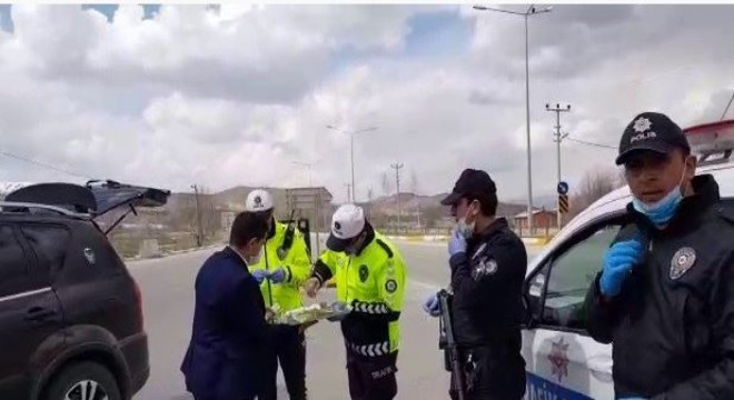 Aşkale Kaymakamı Mehmet Aksu ve Belediye Başkanı Dr. Ahmet Yaptırmış, Polis Haftası münasebetiyle Bölge Trafik Polis Kontrol noktasında görev başındaki personeli ziyaret ederek tatlı ikramında bulundu.
