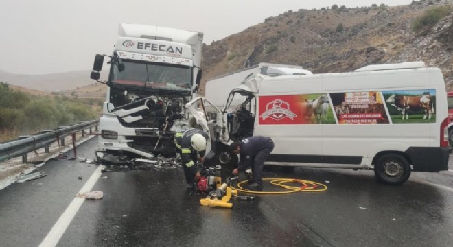 Edinilen bilgiye göre, bugün öğle saatlerinde Erzurum - Erzincan karayolu Tüneller mevkiinde dolu yağışının ardından kayganlaşan yolda direksiyon hakimiyeti kaybedilen minibüs, karşı yönden gelen tır ile kafa kafaya çarpıştı. Kazada minibüste bulunan sürücü ve 2 kişi yaralandı. Yaralılar bölgeye gelen Erzurum Büyükşehir Belediyesi itfaiye ekipleri ve 112 ekiplerince çıkarılarak hastaneye kaldırıldı. Araçta sıkışan sürücüye ilk müdahalesi kaza yerinde yapıldı.