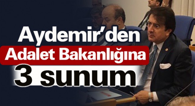 Bölge Adliye Mahkemesi ile Bölge İdare Mahkemesi ek bina ihtiyacını dile getiren Milletvekili Aydemir, ‘Bölge Adliye Mahkemesi ile Bölge İdare Mahkemesi açıldı yakın zamanda Erzurum’da. Çok muhteşem bir çalışma atmosferi var, bir ambiyans var. Ancak, normalde kadro olarak 19 tane daire başkanlığının ihdas olunması gerekiyormuş; yer kifayetsizliğinden, yetersizliğinden dolayı 11’de kalmış. Orada da 15 dönümlük bir yerimiz var bizim. Ek bir binaya ihtiyacımız var. Bunu da özellikle sizin dikkate sunuyorum. ‘ dedi.