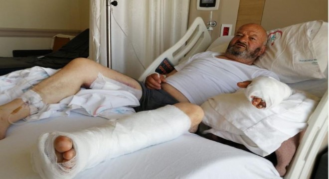 Kenan Gürcü, “Bahçeyi sulamaya gittim. Dereden çıkarak birden üzerime hücum etti. Komşularımız benim bağırmamı duyunca gelince bırakıp kaçtı. Bağırarak bana saldırdı. Ayağımdan kolumdan yaralandım. Hem ayağımı hem de kolumu kırdı” diye konuştu.