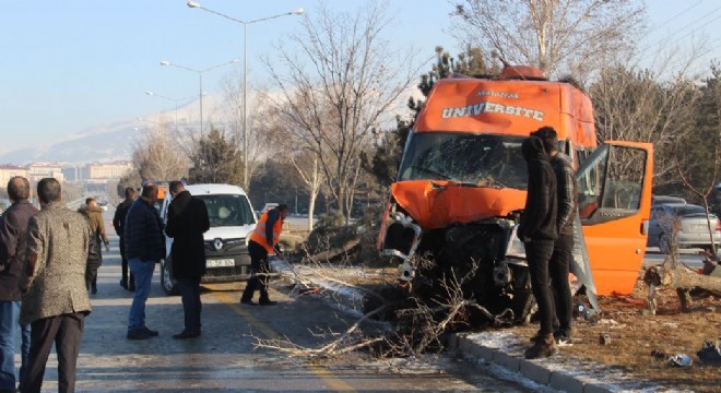 Kaza, bugün 15.00 sıralarında E-80 kara yolunda meydana geldi. Alınan bilgilere göre, şehir merkezinden Aziziye ilçesi istikametine giden Rakip Demir idaresindeki 25 LL 083 plakalı otomobil makas atmak isterken, Atatürk Üniversitesine yolcu taşıyan Adem Bayrak yönetimindeki 25 M 0062 plakalı minibüse yandan çarptı. Minibüs sürücüsü ani çarpmanın etkisiyle direksiyon hakimiyetini kaybederek refüje çıkarak önce ışıklandırma direğine, ardından ağaçlara çarptı. Kazada minibüs sürücüsü Adem Bayrak, otomobil sürücüsü Rakip Demir ile birlikte 11 kişi yaralandı. Yaralılardan 7'si Atatürk Üniversitesi Tıp Fakültesi Araştırma Hastanesine, 4'ü ise Bölge Eğitim ve Araştırma Hastanesine kaldırıldı. Olay yerine çok sayıda ambulans ve polis ekibi sevk edilirken yaralıların sağlık durumlarının iyi olduğu öğrenildi.