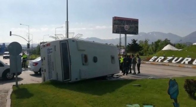 Edinilen bilgiye göre, Erzurum Büyükşehir Belediyesi Enerji A.Ş personel servisi Erzurum Havaalanı yolu üzerinde ETÜ kavşağında devrildi. Kavşağa girerken karşı yönden gelen kamyonetten kurtarmak için sürücüsünün direksiyonu kırdığı servis otobüsü kavşakta devrildi. Kazada sürücü ile birlikte 4 kişi yaralanarak hastaneye kaldırıldı.