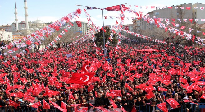 Erzurum İstasyon Meydanı'nda gerçekleştirilen mitinge binlerce partili katıldı. Partililerin “Devletin başına Devlet gelecek” sloganıyla kürsüye gelen MHP Genel Başkanı Devlet Bahçeli, "Erzurum onurludur, ahlaklıdır, sözünün eridir, dik duruşludur. Devlet dardaysa dadaşlar görevden kaçmamıştır, vatan ve millet saldırıya uğruyorsa Erzurum ileri atılmıştır. Türkiye ne zaman dara girse Dadaşlar milli tavrını anında göstermiştir. Yine ülkemiz sıkıntıdadır, Erzurum’a bir kez daha iş düşmektedir" dedi.