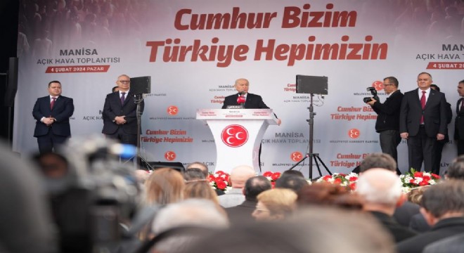 Manisa’daki başkan adaylarından da bahseden Bahçeli, “Manisa’da sahte demokratlara, yalan bezirganlarına, yıkım elebaşlarına, demlenmiş siyasi eylemcilere müsaade yoktur, mükafat yoktur. Cumhur İttifakı'nın birbirinden değerli adaylarıyla Manisa’nın tamamının hizmetine talibiz. Belediye başkan adaylarımızın alayını birden sizlerin onayına sunuyor, bütün hemşehrilerimizin Cumhur İttifakı'nın adaylarının etrafında kenetlenmesini istirham ediyorum. Cumhur İttifakı'na destek verecek misiniz? Manisa’nın ufkunu kapatmaya niyetlenenlere geçit yoktur. Allah’a şükürler olsun ki Manisa kararını vermiş, Manisa tercihini netleştirmiştir. Neye inanırsanız inanın, hangi partiye gönül verirseniz verin, doğduğunuz yöreniz, mezhebiniz ne olursa olsun oyunuzu kullanmak için sandığa gitmenizi ve Manisa’nın gücüne güç katmanınızı önemle rica ediyorum. Hüsran siyaseti ile hizmet siyasetini aynı kefeye koyamayız. Haine hain demek zorundayız. Bölücü örgütlerle demlenen siyasilerin her türlü çirkinliği yaptığını görüyoruz. Yeni yüzyılda Manisa’nın her türlü sorununu çözmek ve hayata geçirmek için boşa zaman kaybetmeyeceğiz. Üreterek gelişeceğiz. Hizmete kervanımız 31 Mart’tan sonra hızlanacak. Manisa’da yaşayan hiçbir insanımızı aç ve açıkta bırakmayacağız. Belediyenin görevi sadece kentsel sorunları çözmek değildir, belediye demek insan onuruna, inan şerefine hürmetle bağlılık, haysiyetle bağımlı muamele demektir. Gözyaşlarını silmeyen ihtiyaç sahiplerini gözetmeyen belediye gerçek manada sorumluluğunu yerine getirmiş sayılamaz. Bugüne kadar MHP ve Cumhur İttifakı yönetimindeki belediyelerde esas ve bağlayıcı husus bu olmuştur. Bizler günübirlik siyasi hesap ve mevki kazanımlar peşinde değiliz. Bizler için vatandaşın huzuru, refahı ve güvenliği her şeyden önemlidir. Milletimiz huzurlu ve güvenli değilse geleceğe umutla bakamayız. Halden dertten anlamayan yüksek hedeflere varamaz. Bugünün sorunlarını çözmekle kalmıyor, geleceğin sorunlarını öngörüyor ve hazırlıklarımızı buna göre yapıyoruz. Yükümüz ağır olsa da yolumuz doğrudur. Kaybedecek zamanımız yoktur. Türkiye’yi daha ileriye götürmek, Manisa’ya daha mamur etmek için yerimizde saymayacağız, daha çok çalışacağız. Manisa’ya hizmeti şeref bileceğiz. Manisa prangalarını kırıyor. İnsan merkezli hizmet odaklı her bir vatandaşa aynı gözle bakan belediyecilik anlayışla çalışıyor.” şeklinde konuştu.