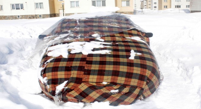 Erzurum’da soğuk hava etkili olurken, garajı olmayanlar vatandaşlar, evlerinin ve iş yerlerinin önlerine park ettikleri araçlarının üzerlerini naylon ve battaniyelerle kapatıyor.