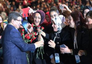 Özgürlüğün, yoksulluğun bedelini bugüne kadar en çok kadınların ödediğini belirten Davutoğlu, "Türkiye yoksul düştüğünde, takatsiz ve dermansız düştüğünde en büyük yük sizlerin sırtında oldu. Allah'a şükürler olsun ki sizin sadakatiniz, sizin iffetli ve asil duruşunuz sayesinde Türkiye bütün topluma yapılan baskıdan, zulümden kurtuldu. Buradan size en çok güvenen sizin gücünüzü en çok harekete geçiren ve siyasete taşıyan saygıdeğer Cumhurbaşkanımız Recep Tayyip Erdoğan ve saygıdeğer hanımefendi Emine Erdoğan'a da şükranlarımızı sunuyorum" diye konuştu.