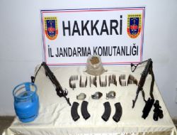 Hakkari’nin Çukurca ilçesinde jandarma ekipleri tarafından yapılan çalışmalarda, araziye gizlenmiş patlayıcı, silah ve mühimmat bulundu.