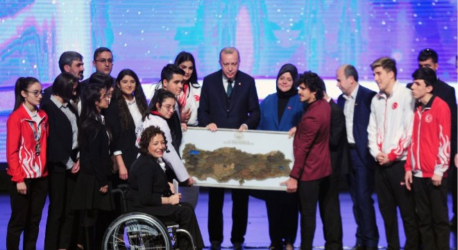 İstanbul’da açılışı yapılan TürkAkım projesine değinen Erdoğan, “Karadeniz’in altından altından Kıyıköy’e geçirmek suretiyle bizim üzerimizden doğalgaz Avrupa’ya gidecek. Türkiye’de de ihtiyacımızın artık büyük bir kısmını tamamlamış olacağız. Türkiye artık böyle bir ülke. Yeni yatırımlar erişilebilirlik esasına göre yapılmalı, eski bunların dönüşümleri süratle yapılmalıdır. Yeni bir hedef belirledik, 100 bin konutu TOKİ olarak yıllık inşa edeceğiz. Öyle konutlarımız var ki, dar sokaklar içinde yangın çıksa itfaiye bile oraya giremiyor, niye? Erişilebilir değil de onun için. Bu sürecin rastgele, plansız, programsız yürütülmesi de doğru değildir. Erişilebilirlik standartları belirlenmeli ve tüm kurumlar çalışmalarını buna göre yürütmelidir. Bu amaçla 2020 yılının erişilebilirlik yılı olarak ilan edilmesinde fayda görüyorum, hayırlı olsun. Yürütülecek projelerle hem fiziksel erişim hem dijital dönüşüm, en önemlisi de zihinsel dönüşüm yönünde gereken adımlar atılmalıdır. Zihinsel dönüşüm sağlanmazsa zaten burada bir sakatlık vardır. Bu sürecin Cumhurbaşkanı olarak takipçisi olacağımı ifade etmek istiyorum. Ailesi olmayan veya ailesinin yanında hayatını sürdürme imkanı kalmayan her bir çocuğumuza sahip çıkmak devlet olarak en başta gelen görevimizdir. Elbette esas olan çocuğun ailesinin yanında veya ona aynı hissi yaşatacak bir ailenin yanında büyümesidir. Çünkü eskiden yaygın şekilde rastladığımız yurt tipi binalarda ve sadece kamu görevlilerinin gözetiminde çocuk yetiştirilmesi pek mümkün olmuyor. Bu amaçla iktidara geldiğimiz yıldan itibaren devlet korumasındaki çocuklara ilgili sistemi baştan sona değiştirdik. Yurt tipi binaları terk ederek aile ve mahalle sıcaklığı içinde hayatlarını sürdürebilecekleri yeni bir sisteme geçtik. Maddi durumu iyi olmadığı için devlet gözetimine verilen çocukları kendi ortamlarında ekonomik ve sosyal olarak destekledik. Halihazırda 128 binin üzerinde çocuğun bu şekilde kendi aileleri yanında yetişmelerini sağlıyoruz. Kimsesi olmayan çocuklar için koruyucu aile sistemini yaygınlaştırdık. Bunu yaparken kardeşleri ayırmamaya da itina gösterdik. Halen 6 bine yakın koruyucu aile 7 bin 259 çocuğumuza sahip çıkıyor” ifadelerini kullandı.