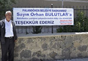Palandöken İlçesi Müftü Solakzade Mahallesi sakinleri, mahallede yapılan çalışmalardan dolayı Belediye Başkanı Orhan Bulutlar’a astıkları pankartla teşekkür ettiler.