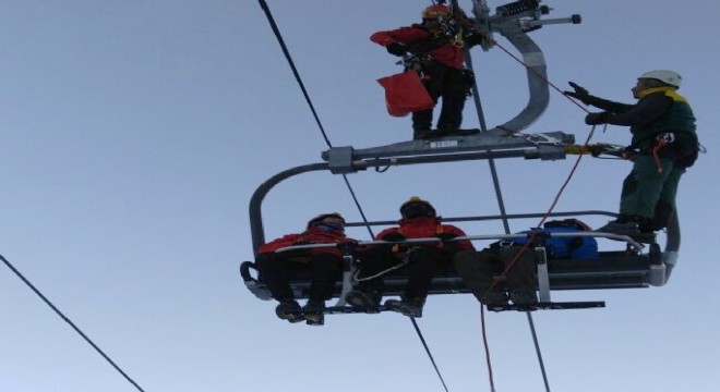 Erzurum Büyükşehir Belediyesi İtfaiye Daire Başkanlığı Arama ve Kurtarma Timi nefes kesen bir operasyonla havada asılı kalan kişiyi kurtardı. İtfaiye Daire Başkanlığı bünyesinde kurulan Arama ve Kurtarma Timi, olası kurtarma çalışmalarında daha aktif olmak için belirli aralıklarla eğitim ve tatbikat çalışması yapıyor. Kurtarma Timi bu kez de Palandöken Dağı’nda bulunan Gondol Lift Tesisleri’nde eğitim amaçlı bir tatbikat yaptı. Senaryo gereği, çağrıyı alır almaz Palandöken Kayak Merkezi’ne ulaşan Arama ve Kurtarma Timi, yerden 60 metre yükseklikte bulunan Gondol Lift Tesisi’ne vararak burada mahsur kalan kişiyi kurtardı. Yetkililer, “Erzurum Büyükşehir Belediyesi’ne devir edilen Palandöken ve Konaklı Kayak Merkezleri’nde olası bir durumda oluşabilecek problemlere anında müdahale etmek amacıyla eğitim amaçlı tatbikat yapıyoruz” dedi.