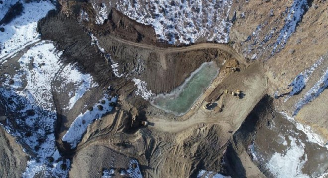 Erzurum Büyükşehir Belediyesi, elverişsiz hava şartlarına rağmen kar kış demeden gölet yapımına devam ediyor.