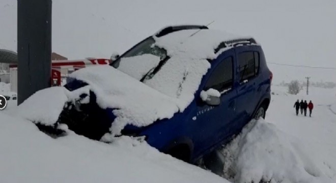 Bingöl’ün Karlıova ilçesinde otomobilin kar yağışı ve buzlanma nedeniyle kontrolden çıkıp direğe çarpma anı güvenlik kamerasına yansıdı.