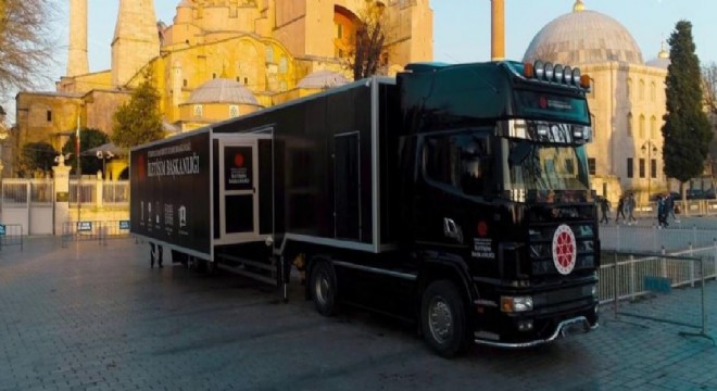 Salgın tedbirlerinin uygulanacağı Dijital Tır’a ziyaretçiler tek tek alınırken, girişte maske dağıtımı yapılacak. Kurulduğunda 40 metrekarelik bir iç alan hacmine sahip olan Dijital Tır’da ziyaretçileri üç boyutlu görünüme sahip, yüksek teknoloji unsurlarıyla oluşturulmuş bilgi akışını aktaran holografik sunucu karşılıyor.