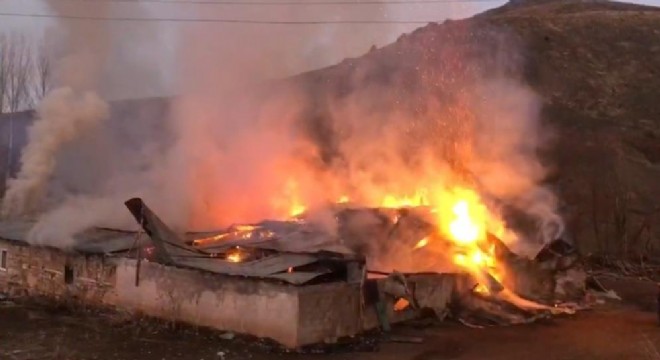 Erzincan’ın Tercan ilçesi Konarlı köyüne bağlı Oğuzlar Mezrasında sobadan sıçrayan kıvılcım nedeniyle çıkan yangında 2 ev, kiler ve içerisi saman dolu merek kül oldu.