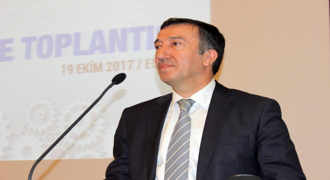 Türkiye’deki 7 bölgede 7 istişare toplantısı yaparak tüm OSB yöneticileri ve sanayicilerle bir araya gelmek istediklerini vurgulayan OSBÜK Başkanı Memiş Kütükcü, “Marmara Bölgesinde ilk toplantımızı geçtiğimiz aylarda 89 OSB ile gerçekleştirdik. 2. Bölge toplantımızı Doğu Anadolu Bölgemizdeki 13 ilden gelmiş olan 22 OSB’mizin yöneticileri ile birlikte yapıyoruz. Türkiye’de 13’ü tarıma dayalı olmak üzere toplam 315 OSB var. Bu 315 OSB’nin 22’si Doğu Anadolu Bölgesinde üretim faaliyeti gerçekleştiriyor. Bu 22 OSB’nin 14’ü işletme, 5 OSB’miz alt yapı, 2 OSB’miz planlama, 1 OSB’miz kamulaştırma aşamasındadır. İşletme aşamasında olan 14 OSB’mizde 797 fabrika üretim faaliyeti gerçekleştiriyor ve 35 bine yakın istihdam sağlıyor. Doğu Anadolu Bölgemizde Türkiye’nin her bölgesinde olduğu gibi OSB’lerimizdeki her metrekare üretime geçen her fabrika bizim için çok değerlidir” ifadelerini kullandı.