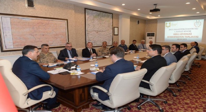 2023-2024 eğitim öğretim yılının huzur ve güven içinde sürdürülmesi, okul çevrelerinin güvenliği ile trafik güvenliğinin artırılması amacıyla Erzurum Valisi Mustafa Çiftçi, başkanlığında "2023-2024 Eğitim Öğretim Yılı Okul Güvenliği Koordinasyon Toplantısı" gerçekleştirildi.