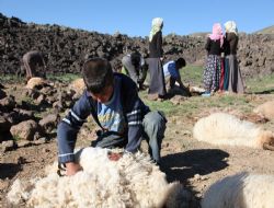 BİTLİS (İHA) - Nemrut Dağı eteklerinde koyun ve kuzu kırpan çocuklar, kırparken yünü kavrama, elleriyle makas tutuşları ve kırpma becerileri ise 40 yıllık çobanlara adeta taş çıkartıyor.