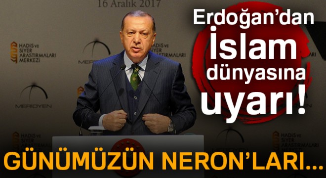 ABD'nin Kudüs kararına da tepki gösteren Cumhurbaşkanı Erdoğan, "Bölgemiz son dönemde oldukça sancılı günlerden geçiyor. Kendimizi hemen her gün yeni bir krizin ya da çatışmanın ortasında buluyorsunuz. Türkiye olarak her hal ve şartta kardeşlerimizin arasını yapmaya, krizleri suhuletle aşmaya çalışıyoruz. Biz bu gayret içerisindeyken, günümüzün neronları yeni bir ateş yakmış. Tam Suriye meselesinde mesafe kat ettik, Kudüs meselesini Yemen'den yükselen feryatları duyuyoruz. İslam dünyası tıpkı bir asır önce olduğu gibi kan, gözyaşı, kardeş kavgası üzerinden yeniden dizayn edilmeye çalışılıyor.