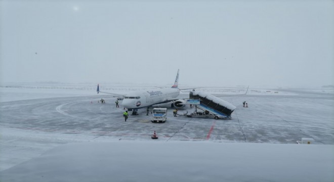 Erzurum'u 3 gündür adeta esir alan yoğun ve aralıksız kar yağışına rağmen hava limanında uçakların iniş ve kalkışları güvenli şekilde sağlanıyor.