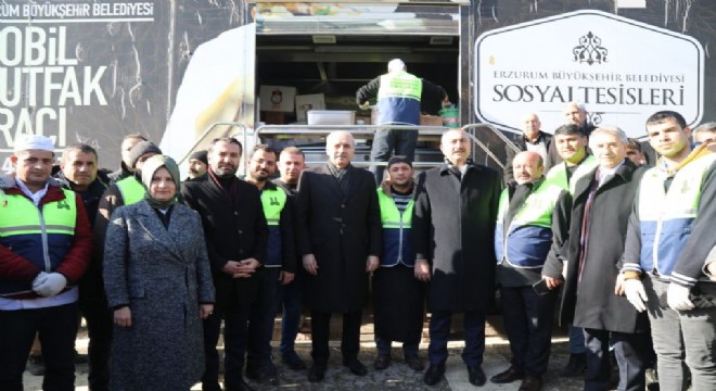 Erzurum Büyükşehir Belediyesi’nin deprem bölgesi Elazığ’a gönderdiği mobil mutfakta on binlerce kişiye sıcak yemek ikramında bulunuldu.