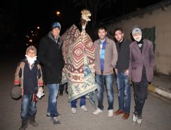ERZURUM (İHA) - Erzurum’un Oltu ilçesinde bir grup genç, kendi yaptıkları deve ile evleri ziyaret ederek hem yılbaşı harçlığı hem de meyve, çerez topladı.
