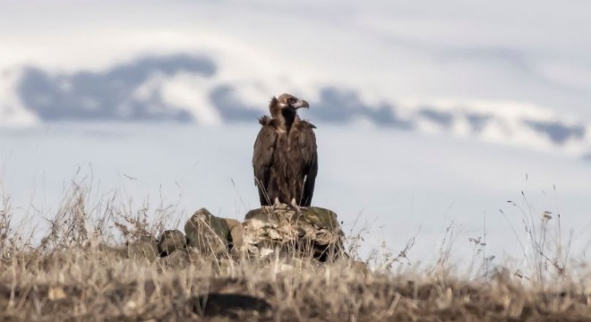Türkiye'deki 4 akbaba türünden görüntülenmesi en zor olan ve leşlerle kemikleri temizleyerek, doğaya büyük katkı sağlayan "kızıl akbabalar" Kars'ta görüntülendi.