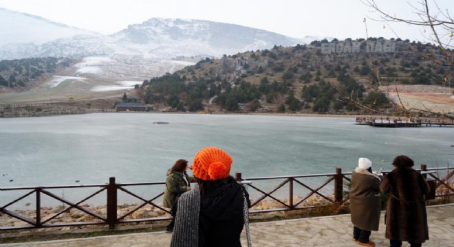 Erzincan’da soğuk havanın etkisiyle Ergan Dağı’nda bulunan Ardıçlı Gölü’nün yüzeyi buzla kaplandı, oluşan kış manzaraları ziyaretçilerin ve fotoğraf tutkunlarının ilgisini çekti.